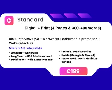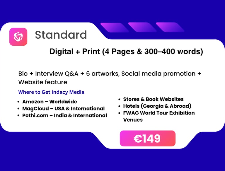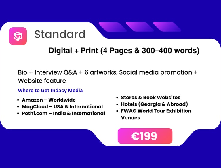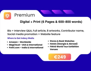 Upon review and approval, your feature will appear in Indacy Media Global Magazine (digital + print), distributed across 30+ countries.