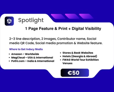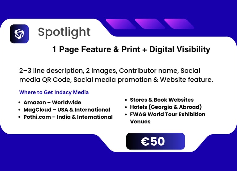 Upon review and approval, your feature will appear in Indacy Media Global Magazine (digital + print), distributed across 30+ countries.